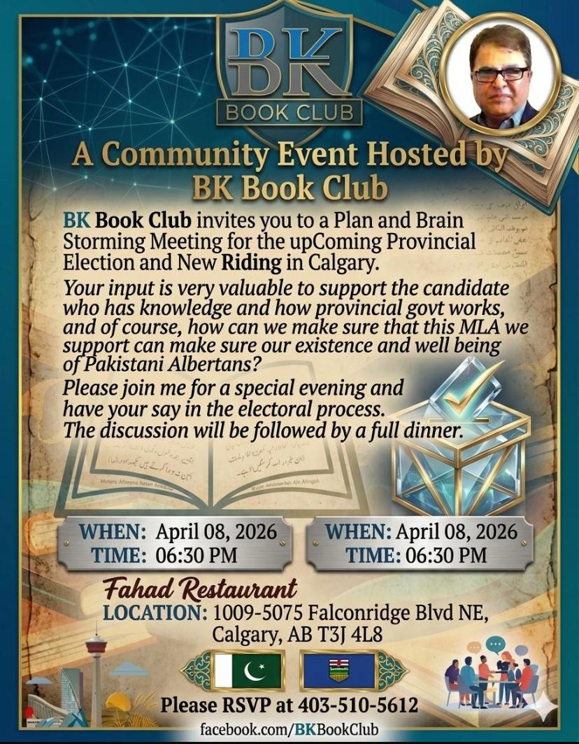 As Alberta looks ahead to the provincial general election scheduled for October 18, 2027, community discussions in Calgary are beginning to take shape. In this context, BK Book Club is organizing a brainstorming gathering focused on community engagement and dialogue around the qualities of effective political representation in a new riding.