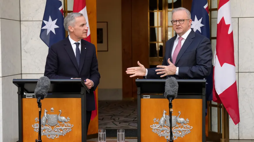 Canada Prime Minister Mark Carney and Australia Prime Minister Anthony Albanese released a joint statement in Canberra outlining stronger economic, defence, clean energy and technology cooperation between the two nations.