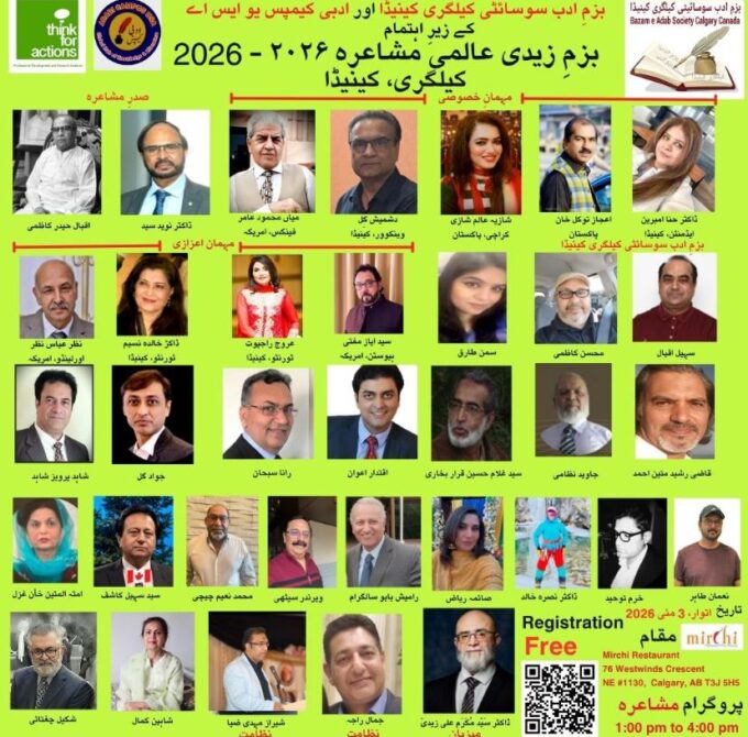 Bazm e Adab Society Calgary hosts International Urdu Literary Conference 2026 on May 3 featuring renowned poets and writers from Pakistan USA and...
